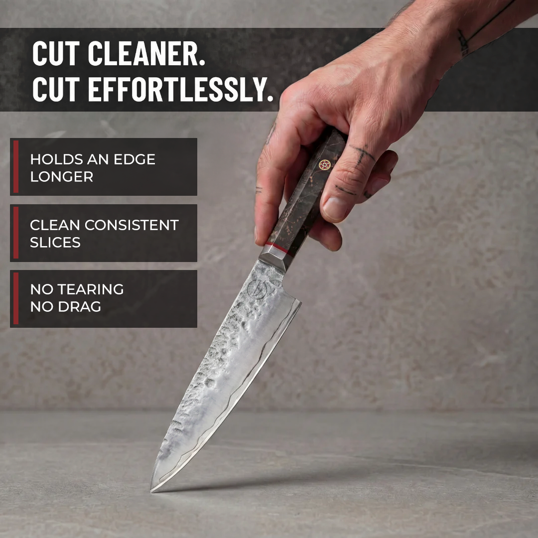 “I didn’t expect a knife to look this good and perform this well. It has the weight, sharpness, and control of a pro tool, but the design makes it stand out every time I use it.”