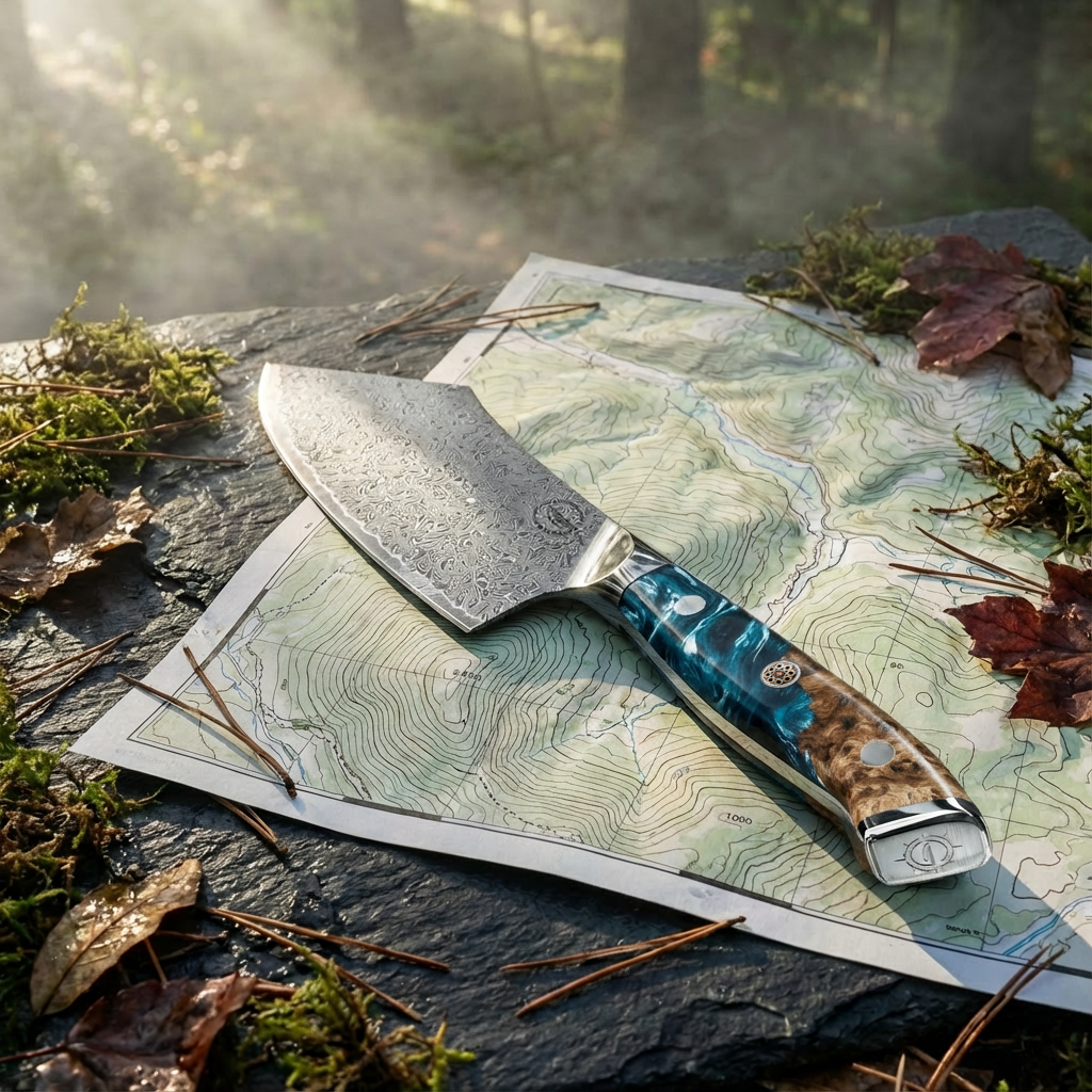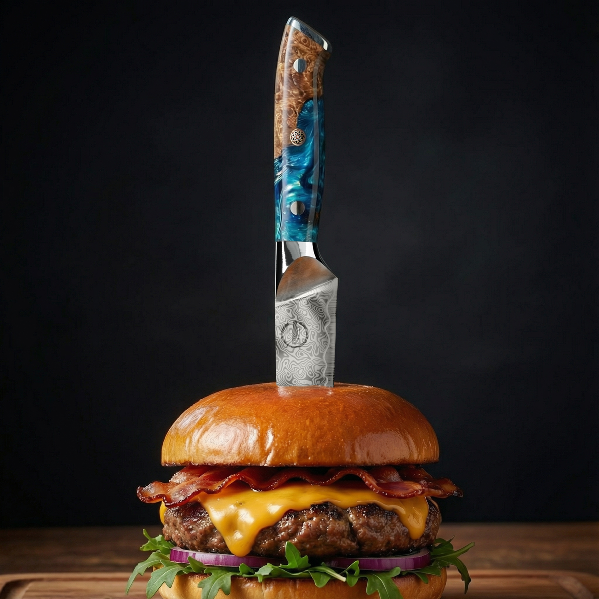 The Nomad Damascus Edition brings the perfect blend of performance and artistry. The deep, swirling patterns rippled across the blade showcase centuries-old forging traditions while the ergonomic resin-and-burl handle provides comfort, control, and undeniable style. Whether preparing a weeknight meal or hosting a special occasion, this blade transforms every task into a moment worth savoring.
