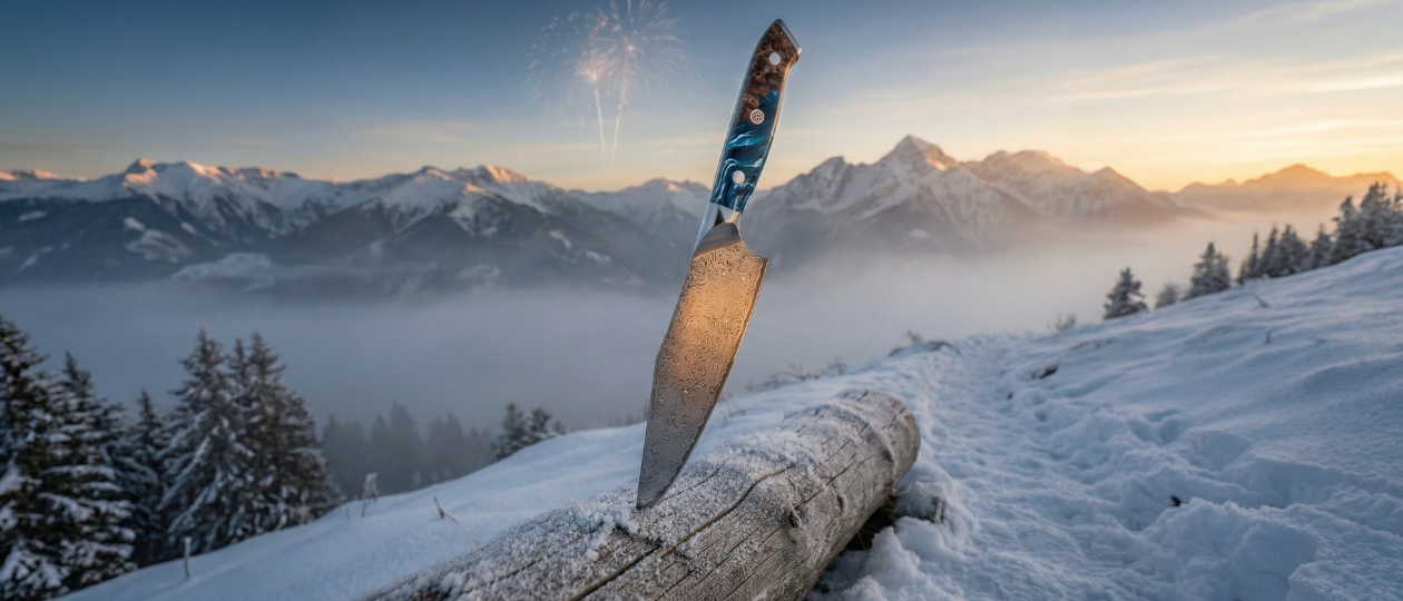 We use only premium steels imported from Japan in most of our collections, including high carbon and Damascus steel. These materials are chosen for their exceptional sharpness, edge retention, and strength. Our handles are crafted from durable pakkawood or epoxy resin, offering both comfort and long lasting performance. Each knife is built with a full tang construction, ensuring perfect balance and stability in every cut. These are not mass produced knives. They are crafted to last and perform.